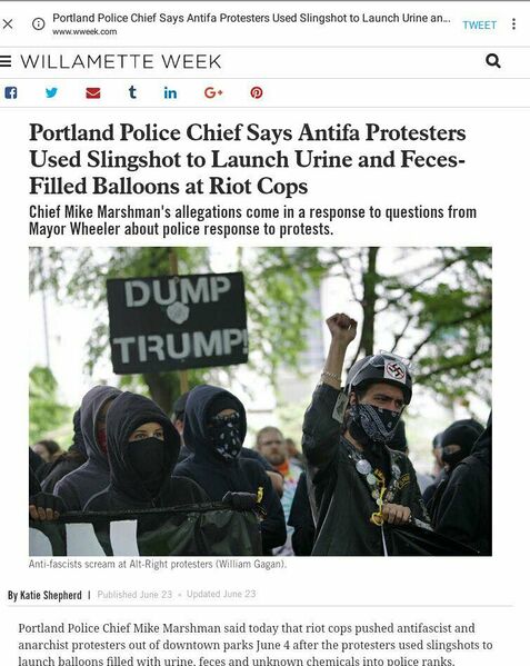 Antifa hurls feces and urine, like the demented apes they are. PortlandStrong!