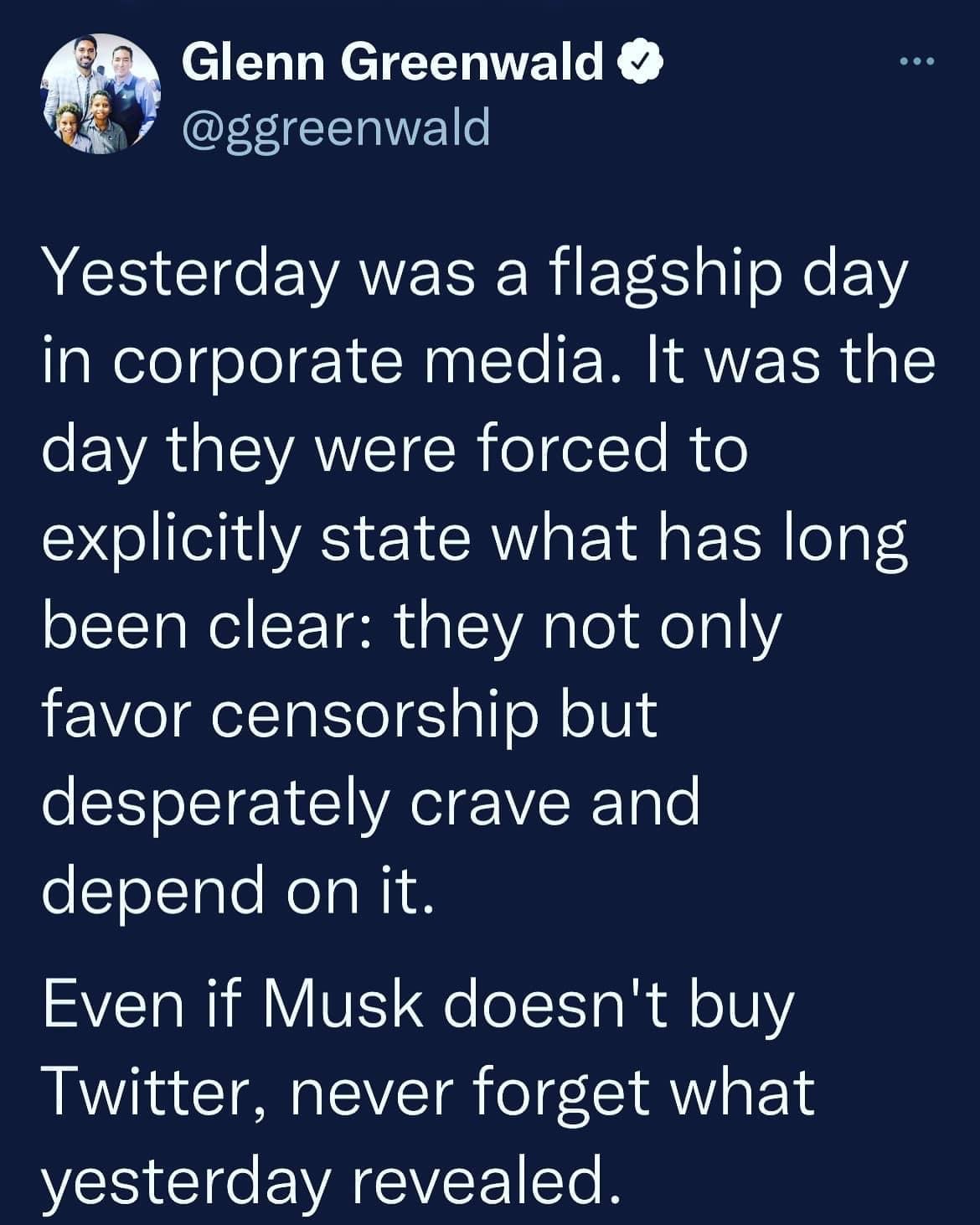 Yesterday was a flagship day in corporate media. It was the day they were forced to explicitly state what has long been clear: they not only favor censorship but desperately crave and depend on it.