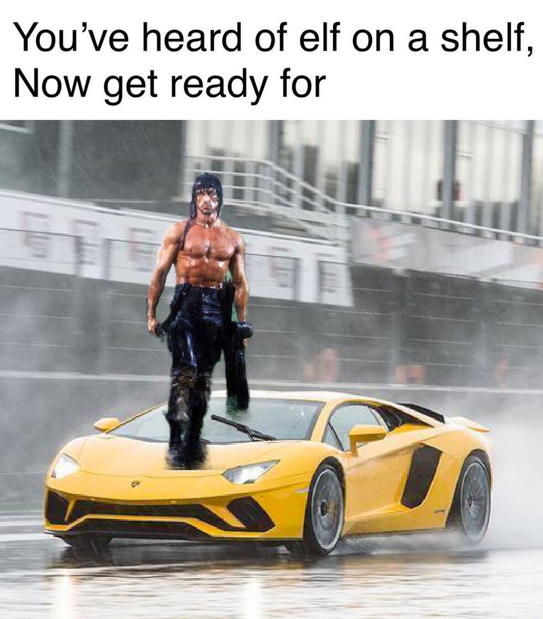 You've heard of Elf on the Shelf, now get ready for... Rambo on a Lambo(rgini)...