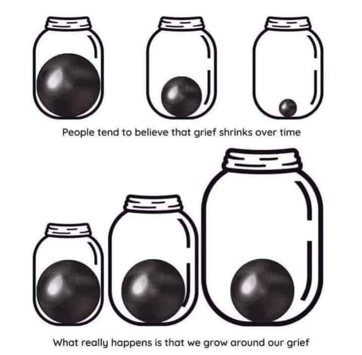 People tend to believe that grief shrinks over time. What really happens is that we grow around our grief.
