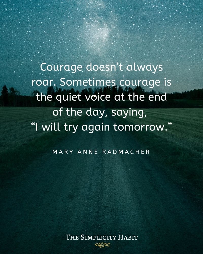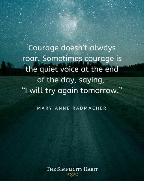 Courage doesn't always roar. Sometimes courage is the quiet voice at the end of the day, saying, "I will try again tomorrow."