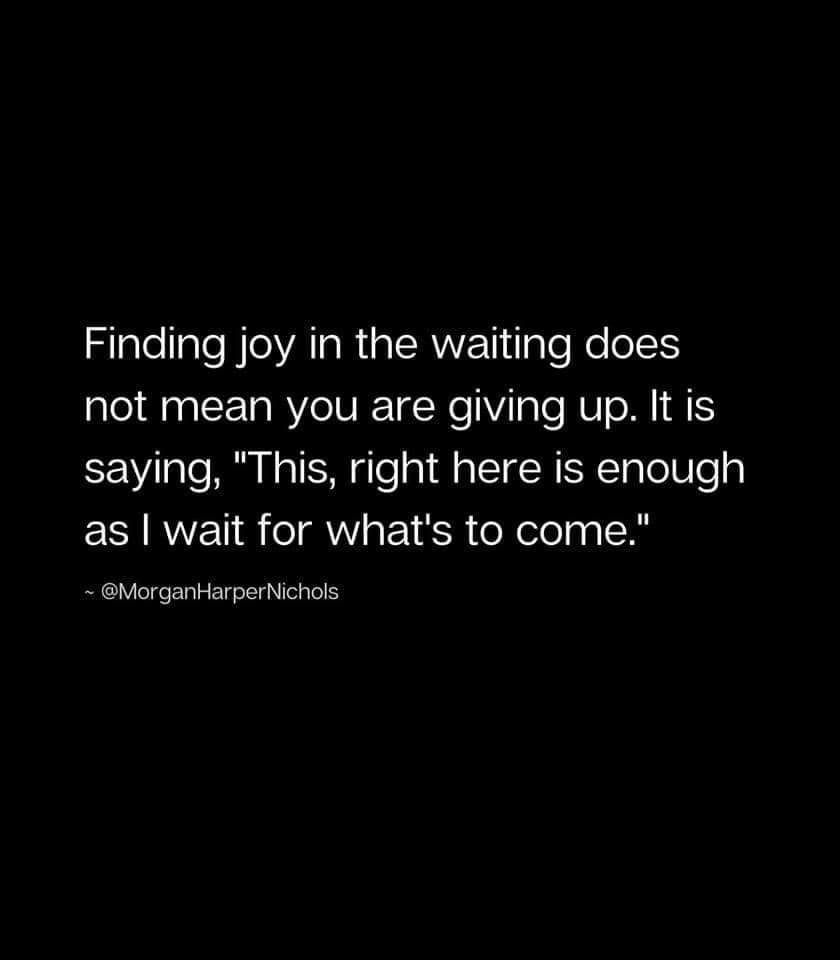 Finding joy in the waiting does not mean you are giving up. It is saying, "This, right here is enough as I wait for what's to come."