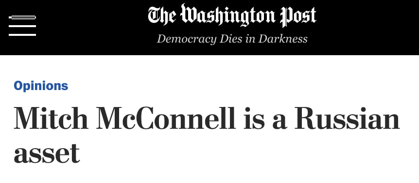 WaPo: Mitch McConnell is a Russian stooge (if your only tool is a hammer and sickle, all your enemies look like collaborators).